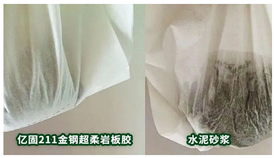 億固211金鋼超柔巖板膠的超強(qiáng)保水性,一方面可以避免因?yàn)闅鉁馗摺w吸水性太強(qiáng)導(dǎo)致瓷磚膠水分流失過(guò)快,確保瓷磚膠有足夠的水分來(lái)達(dá)到足夠的強(qiáng)度。