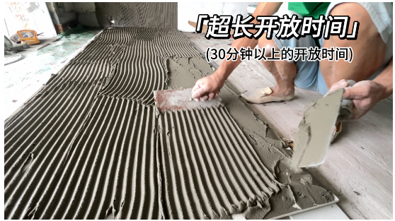 針對(duì)大板鋪貼的施工難度,億固211金鋼超柔巖板膠開(kāi)放時(shí)間可達(dá)30分鐘,是普通瓷磚膠可操作時(shí)間的1.5倍。為工人提供更多檢查和鋪貼的時(shí)間,也進(jìn)一步提升了大板鋪貼的安全性。