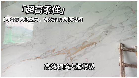 產(chǎn)品具有超高的柔性和抗滑移能力,能吸收陶瓷大板與基層材料因膨脹系數(shù)不同而產(chǎn)生的形變,有效釋放大板應(yīng)力,更好地適應(yīng)因季節(jié)變化、猛烈撞擊等原因?qū)е禄鶎有巫兌鴰?lái)的脫落空鼓現(xiàn)象,完美解決大板后期開(kāi)裂問(wèn)題。